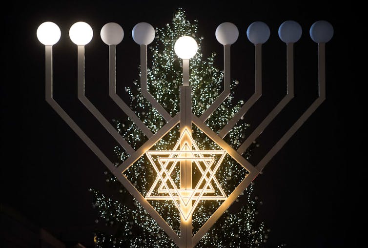Store windows, doctors’ offices and college dining halls display Christmas trees and menorahs side by side, though the latter is a ritual object, not merely a decoration. A menorah, or “hanukkiah,” is lit in a specific way, on specific days, with accompanying prayers – more akin to a Christian Advent wreath than to the holly decking the halls.